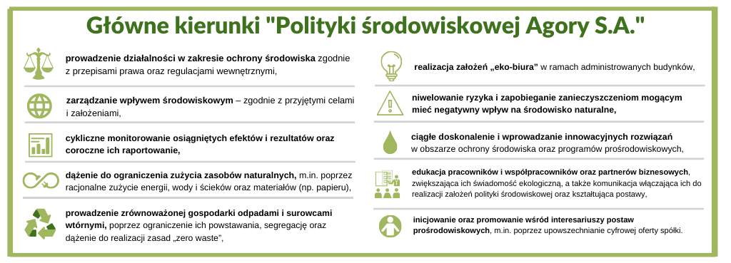Głównymi założeniami zarządzania wpływem środowiskowym w Grupie Agora w zakresie administracji budynkami są: