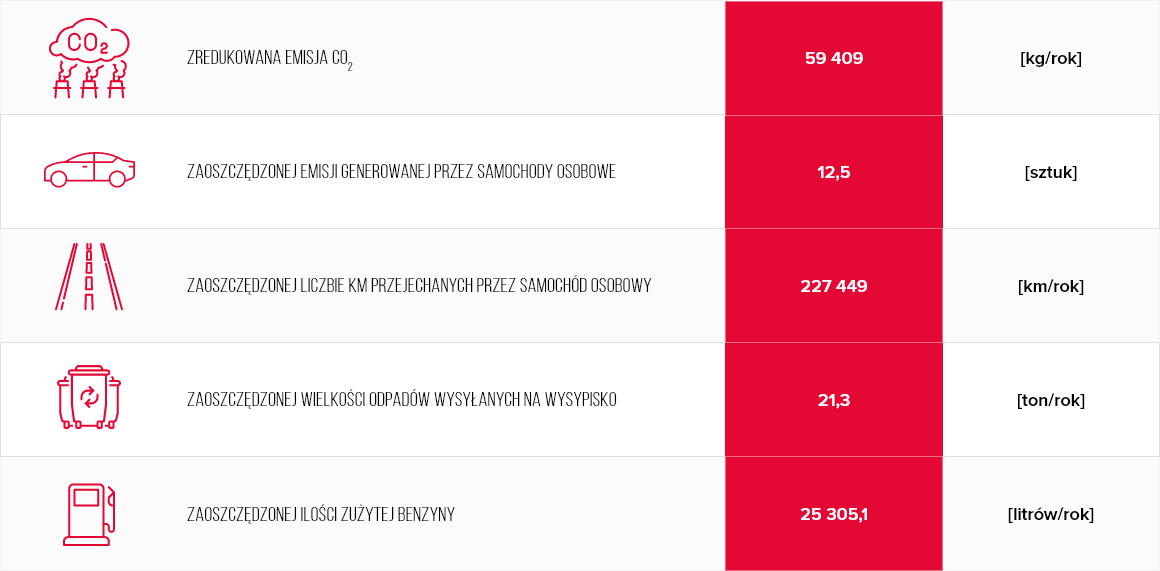 Spółka w 2019 r. wdrożyła zalecenia wynikające z przygotowanego audytu efektywności energetycznej. Dzięki zrealizowanym inwestycjom: