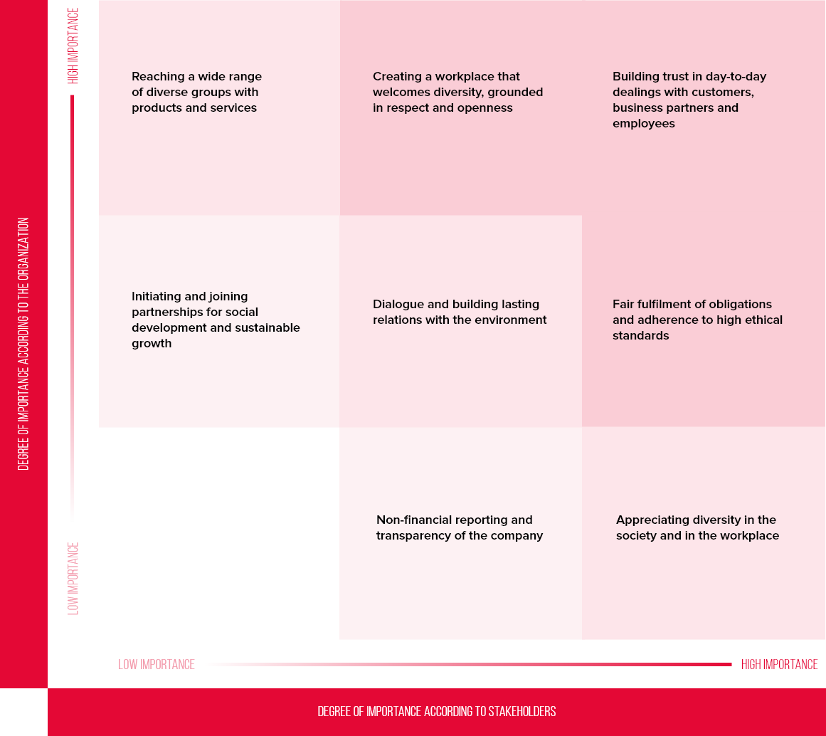 - As areas of key importance the employees indicated workplace aspects, in particular employee training and development and creating a workplace that welcomes diversity, grounded in respect and openness, as well as building trust in relations with stakeholders and high ethical standards.