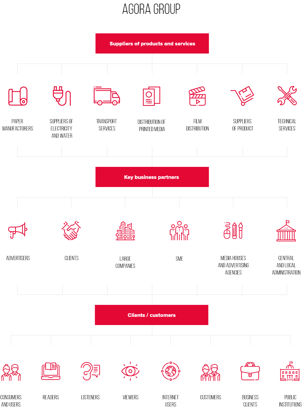 Clients and users of our services are among the key stakeholders of Agora Group. This approach is expressed by the policies adopted by the entities of Agora, rules and self-imposed regulations as well as involvement in industry projects, also by introducing solutions and undertaking initiatives aimed increasing the accessibility, security and quality of our products.