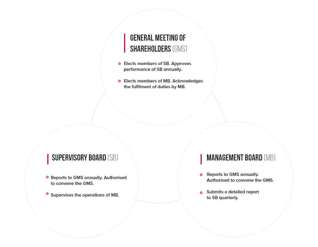 The Company's Management Board and Supervisory Board act in the interest of the Company. The Management Board and the Supervisory Board have members who represent high qualifications and experience.